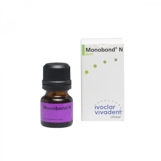 Monobond N is a versatile universal primer designed for the optimal conditioning of a wide range of restoration surfaces in dentistry. Its key role is to prepare these surfaces for secure and enduring bonding with luting composites and other dental materials. Monobond N's adaptability allows it to be used with different materials, such as glass ceramics, oxide ceramics, metals, composite resins, and fiber-reinforced composites. This universal primer simplifies and enhances the adhesion process, ensuring that restorations are durable and long-lasting. Its application leads to consistent and predictable outcomes in dental procedures, promoting patient satisfaction and the overall efficiency of dental treatments. Monobond N is an indispensable tool for dental professionals seeking reliable and efficient solutions for successful dental restorations.