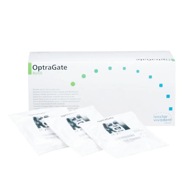 Ivoclar Optragate Cheek And Lip Retractor is a latex-free lip and cheek retractor used in dental procedures. Its exceptional flexibility and elasticity offer comfort to patients while maintaining an open mouth, facilitating various dental treatments. This innovative device gently and evenly retracts the lips and cheeks, resulting in better access and a cleaner, more isolated treatment area. The soft, adaptable material comfortably accommodates mouth movements during occlusion checks and X-ray imaging. Dental professionals benefit from OptraGate's easy access, which enhances control and visibility during procedures. It allows for the precise use of dental mirrors and vacuums for tongue retention. When combined with other auxiliary equipment like parotid pads and sublingual cotton rolls, OptraGate optimizes relative isolation, streamlining treatment processes. OptraGate is suitable for diagnostic, preventive, and therapeutic dental procedures, including restorative work, cavity preparation, professional cleaning, diagnostics, scaling, root planing, tooth whitening, and impression making. Composed of latex-free thermoplastic elastomer (SEBS) and polypropylene, OptraGate ensures patient safety and comfort during dental care.