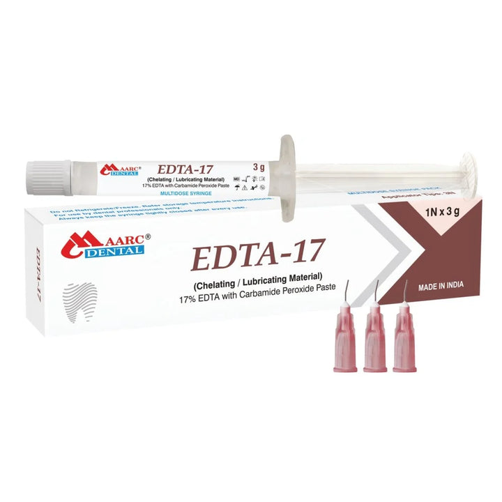 It is water soluble Ethylene Diamine Tetraacetic Acid (17% EDTA with Carbamide Peroxide) Paste for root canal cleaning.