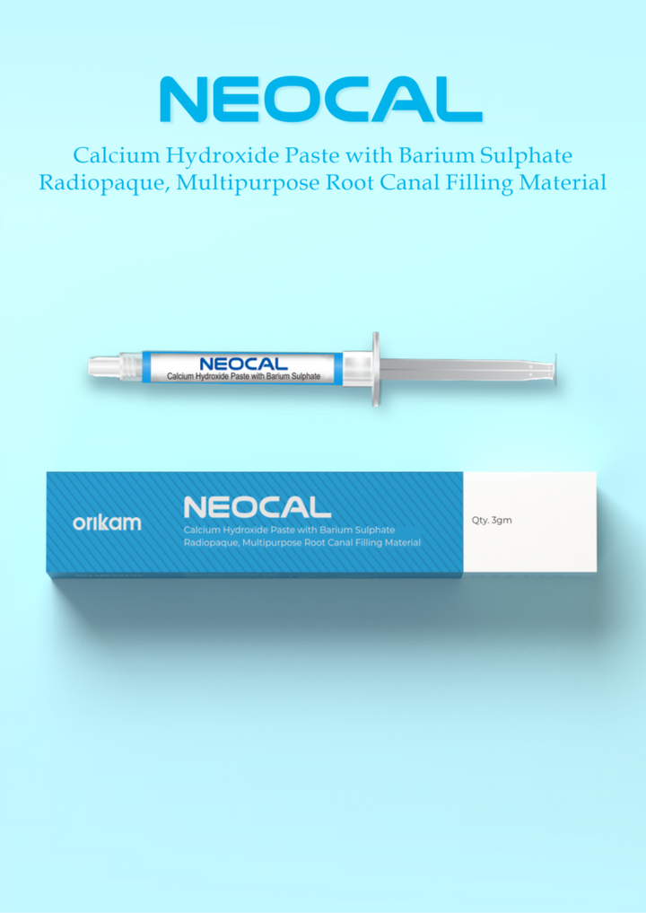 Neocal is radiopaque calcium hydroxide paste with Barium Sulphate with basic pH of value >12.5 and is indicated for endodontic procedures.