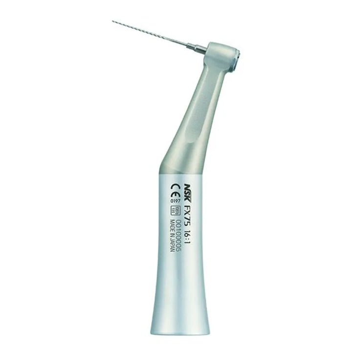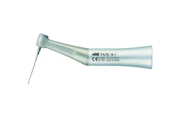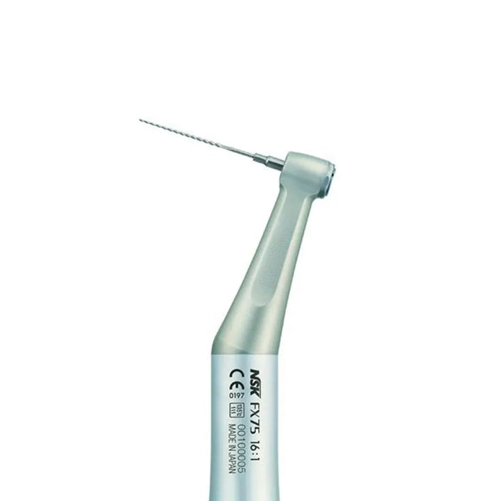 NSK FX 75 16:1 Miniature Head is a state-of-the-art dental instrument that combines advanced features to deliver exceptional performance and precision during dental procedures. With its compact and lightweight design, it provides optimal maneuverability and access to even the most challenging areas within the oral cavity. The gear ratio of 16:1 ensures precise control and accuracy, allowing for efficient shaping and filing of dental surfaces. The push button chuck mechanism enables effortless and tool-free insertion and removal of engine files, streamlining workflow and promoting efficiency. The FX 75 operates at high speeds of up to 20,000 min-1, enabling fast and efficient cutting, shaping, and polishing. Its robust construction and use of high-quality materials ensure durability and long-lasting performance. The miniature head, combined with a well-positioned LED lighting system, provides enhanced visibility for precise and accurate treatment. The NSK FX 75 16:1 Miniature Head is a reliable and versatile instrument that empowers dental professionals to deliver exceptional dental care.