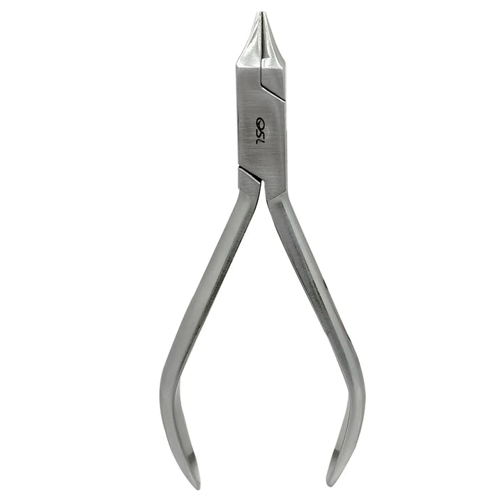 The OSL Bird Beak Plier is a versatile orthodontic instrument designed for precise bending, shaping, and forming of archwires and loops during dental procedures. Featuring a unique round and pyramid beak configuration, it enables the creation of various wire shapes, including loops, springs, and hooks, on wires up to 0.76 mm thick. Crafted from high-quality, surgical-grade stainless steel, the plier offers excellent durability, corrosion resistance, and long-lasting performance. Its smooth, tapered tips prevent wire scoring, while the ergonomic handle ensures comfort and control. The instrument is fully autoclavable, making it suitable for repeated clinical use.