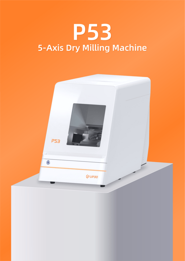 A 5-axis milling machine developed by UP3D, has intelligent features such as automatic calibration, monitoring of burs life, and automatic renewal, the P53 digitizes & scales up traditional processing methods.