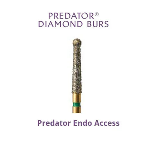Prima Dental Endo Access Diamond Bur is a specialized rotary instrument designed for precise and efficient endodontic access cavity preparation. Featuring a high-quality diamond-coated cutting surface, this bur enables smooth and controlled enamel and dentin removal, facilitating better access to root canals.