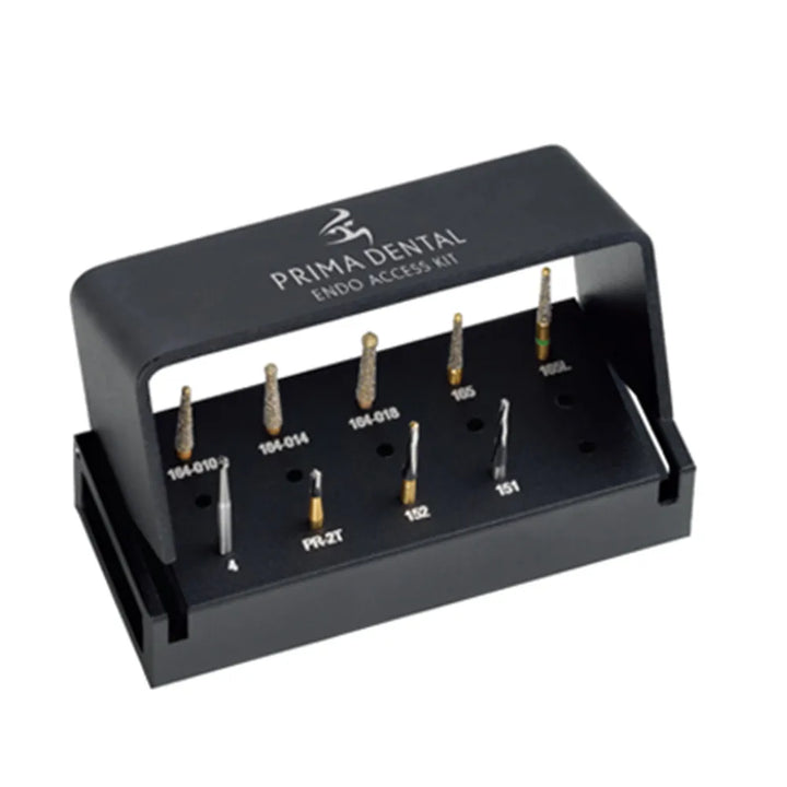 Prima Dental offers a bur kit that provides a unique set of instruments necessary to achieve optimal results for a variety of procedures. They have been developed by key clinicians leading universities worldwide. The Endo Access Kit provides all the burs needed for initial endodontic access through dentin, metal, and porcelain.Contains all the burs needed for initial endodontic access through dentine, metal, and porcelain.