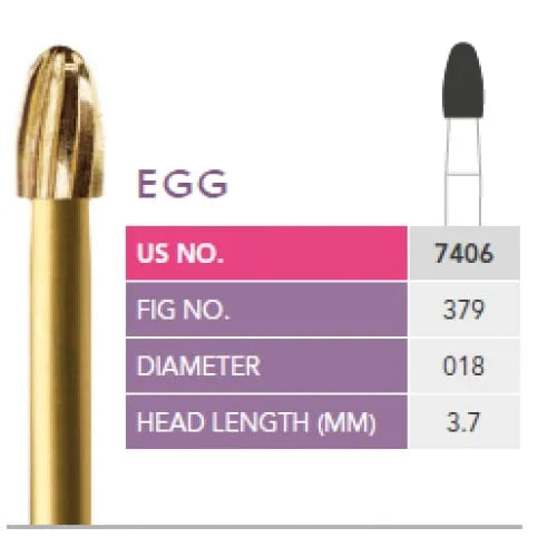 The Prima Dental Trimming and Finishing Egg Bur (7406) is expertly engineered for high-performance finishing of restorative materials. With its egg-shaped head and 12-blade configuration, this bur allows smooth, vibration-free contouring and polishing of composite restorations, enamel surfaces, and amalgam fillings. Its precision-ground blades ensure fine finishing with minimal tissue trauma, enhancing both procedural efficiency and restorative outcomes. Designed for optimal control and durability, the 7406 bur is a must-have tool for esthetic refinements in restorative dentistry.