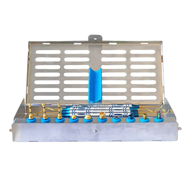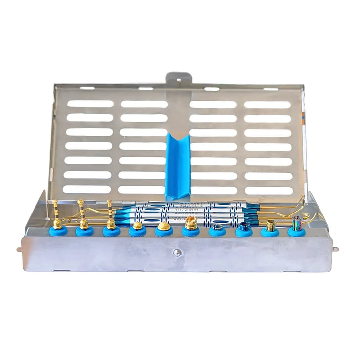 Waldent Advance Sinus Elevation Kit is used to aid in the lifting up of the sinus cavity for implant site preparation.Elevators feature a more round, smooth tip for lifting the sinus with minimal puncture risk.
