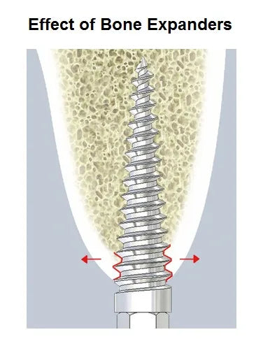 - The coronal part of the expander is smooth, only the initial part being threaded. When the smooth part comes into contact with the corticalis, instead of penetrating into it, it displaces it, facilitating lateral expansion.