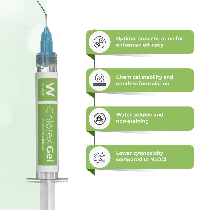 Chlorex gel, a potent antimicrobial gel containing 2% chlorhexidine digluconate, is a crucial element in endodontic treatment. It serves the primary purpose of disinfecting the root canal system by effectively eliminating bacteria and other microorganisms while preventing reinfection. The selective action of Chlorex gel targets and inhibits the growth of microbes responsible for pulpal and periapical diseases, ensuring optimal treatment outcomes. What sets Chlorex gel apart are its distinct advantages. Notably, it exhibits lower toxicity compared to alternative antimicrobial agents, making it a safer choice for patients. Additionally, its antimicrobial effect lasts longer, providing extended protection against microbial pathogens. Furthermore, the gel minimizes tissue dissolution, reducing the potential for damage to surrounding tissues.