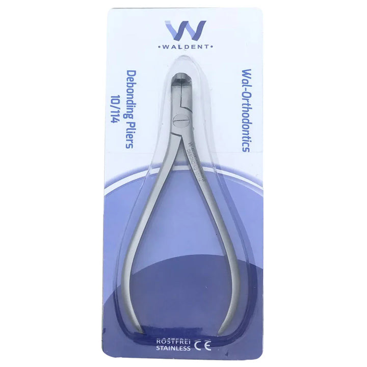 Waldent Debonding Pliers 10/114 are designed to effectively remove bonded brackets during orthodontic procedures. With their specific design, they apply a tensile force on the adhesive bond, allowing for the gentle removal of brackets without excessive distortion. These pliers are equipped with an angled tip, facilitating easy access to both anterior and posterior areas of the mouth, ensuring thorough and efficient bracket removal. Additionally, they are crafted from stainless steel, making them durable and suitable for reuse. Furthermore, they are latex-free and non-sterile, providing a safe and comfortable experience for both patients and practitioners.