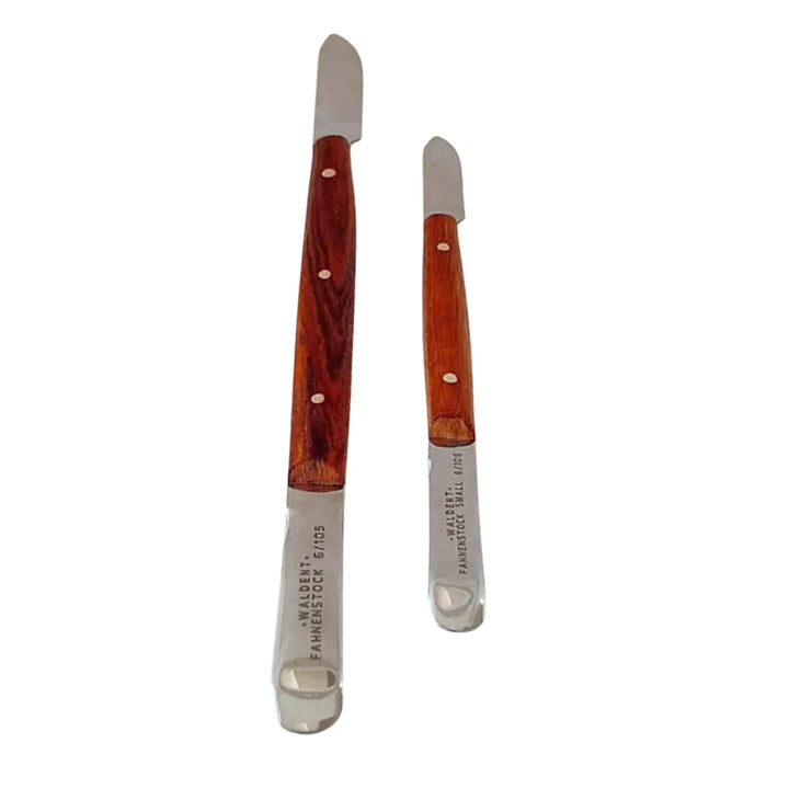 Waldent Fahnenstock Wax Knife Spatulas are meticulously designed tools used for carving and shaping wax patterns in dental and artistic applications. Crafted with precision, these spatulas feature a blunt blade available in varying sizes and shapes, providing versatility and accuracy in sculpting intricate details. The blades can be heated to soften wax, enabling smooth and efficient manipulation while fashioning patterns. The ergonomic handles offer a comfortable grip, ensuring ease of use during prolonged tasks. these spatulas are durable and designed for long-term use. Suitable for professionals and students alike, the Waldent Fahnenstock Wax Knife Spatulas are essential tools for achieving precision in wax modeling and pattern creation in dental labs and beyond.