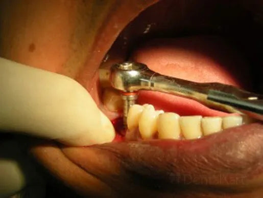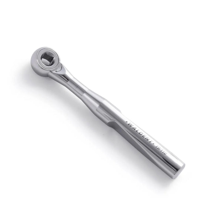 Waldent Implant Ratchet Wrench Dual Sided (19/110) is fixed on the surgical screwdriver terminal unit. There is a direction indicator of the wrench around the connecting washer for easy handling
