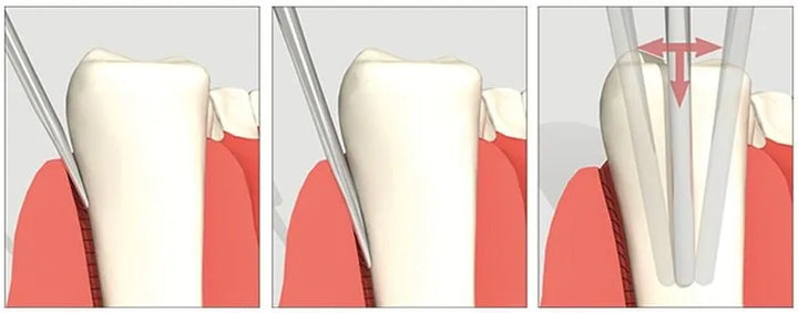Thin and sharp blade of luxators is designed to be pushed into the periodontal ligament space along the long axis of the root to cut periodontal membrane and expand the alveolar socket.