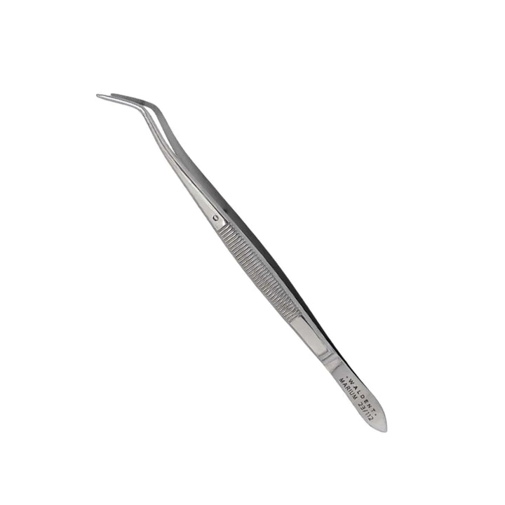 Waldent Marium Tweezer (23/112) is a premium dental instrument designed for precision and efficiency in various dental procedures. Crafted from high-quality stainless steel, it ensures durability, corrosion resistance, and a long service life. Its ergonomically angled, serrated tips provide optimal grip and control, allowing for secure handling of cotton rolls, gauze, or small instruments during treatments. The angled design facilitates easy access to difficult-to-reach areas in the oral cavity, enhancing procedural accuracy and patient comfort. Lightweight and perfectly balanced, the tweezer minimizes hand fatigue during prolonged use. It is sterilizable, ensuring high hygiene standards and repeated use without compromising functionality. Designed to meet the demands of modern dentistry, the Waldent Marium Tweezer (23/112) is an essential tool for dental practitioners, offering reliability and performance for procedures requiring precision handling of materials in clinical or surgical settings.