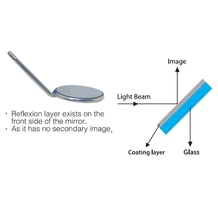Waldent Rhodium Coated Front Surface Mouth Mirror Tops - have superior reflective property and forms extra sharp images because of single reflection owing to the front surface coating.