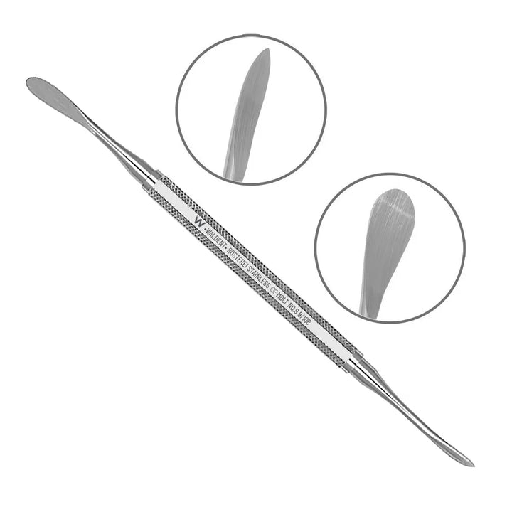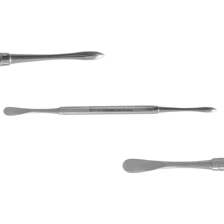 Waldent Periosteal Elevator Molt No.9 is Double - Ended Instrument with one rounded, blunted end & other end is sharp-pointed. The blunt end is Spoon - Shaped. The rounded edge of the Molt 9 periosteal elevator minimises the tearing of tissue when lifting the gum flap. The sharp end makes the initial lifting of the flap easier. The pointed end is used in prying motion for the elevation of the flap.