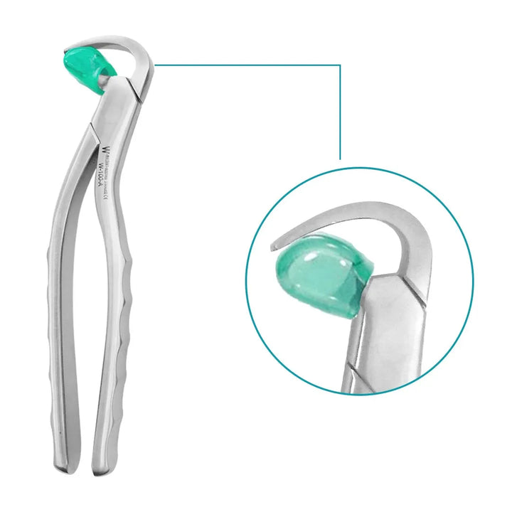 Waldent Physics Extraction Forceps : The Unique design these forceps allows light but constant pressure to be applied to the tooth which leads to chemical changes in PDL and subsequent release of Sharpey's Fibers.
