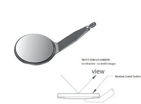 - The mirror with rhodium on the glass surface (FS - Front Surface) has the advantage that the image is reflected directly on the surface and thus is absolutely sharp.
