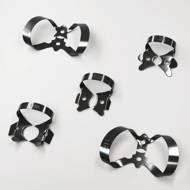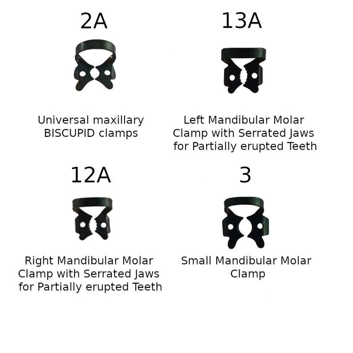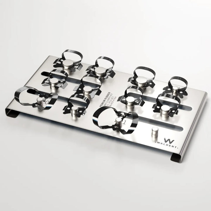 Rubber Dam Clamps are used to isolate the operating site (one or more teeth) to protect the oral tissue from saliva or other fluids. Our 11 pcs set contains comprehensive range of clamps used in restorative dentistry.