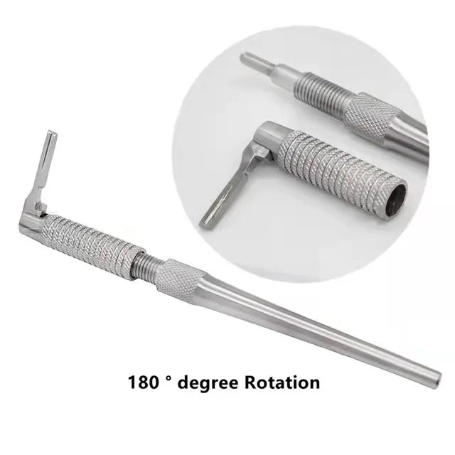 Waldent Scalpel Handle Rotatable 180° NO.3 (9/114), a revolutionary surgical instrument designed to enhance precision and accessibility in medical procedures. Engineered with meticulous attention to detail, this scalpel handle redefines the standards of surgical cutting and dissection. Crafted for ease of use, the Waldent Scalpel Handle features a unique 180-degree rotating head, allowing seamless maneuverability in even the most challenging anatomical regions. With this innovative design, healthcare professionals gain unparalleled access to hard-to-reach areas, ensuring meticulous surgical precision. The handle is ergonomically designed to provide a comfortable and secure grip, enabling surgeons to maintain optimal control throughout procedures. Its adjustable nature accommodates standard scalpel blade sizes, ensuring compatibility with a wide range of surgical requirements. When paired with a compatible blade, the Waldent Scalpel Handle transforms into a single-bladed surgical instrument, capable of precise cutting and dissection with unparalleled accuracy.