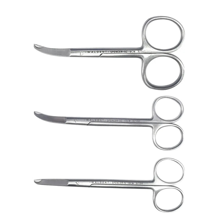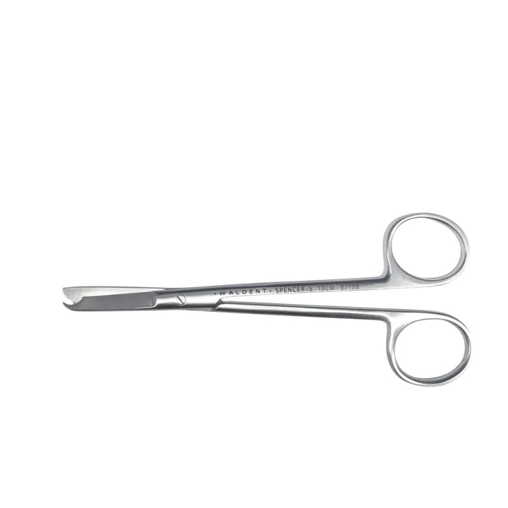 Waldent Scissors Spencer for Suture Cutting is a precise dental instrument designed for accurate and controlled suture removal. With a compact 9cm size, it offers optimal maneuverability in intricate dental procedures. The straight blades ensure precision in cutting sutures, enhancing efficiency during oral surgeries. Crafted from high-quality stainless steel, these scissors exhibit durability, corrosion resistance, and ease of sterilization, adhering to stringent infection control standards. The ergonomic design of the handles provides a comfortable grip, minimizing hand fatigue during prolonged use. The versatile nature of these scissors makes them suitable for various dental applications, highlighting their utility in diverse clinical scenarios