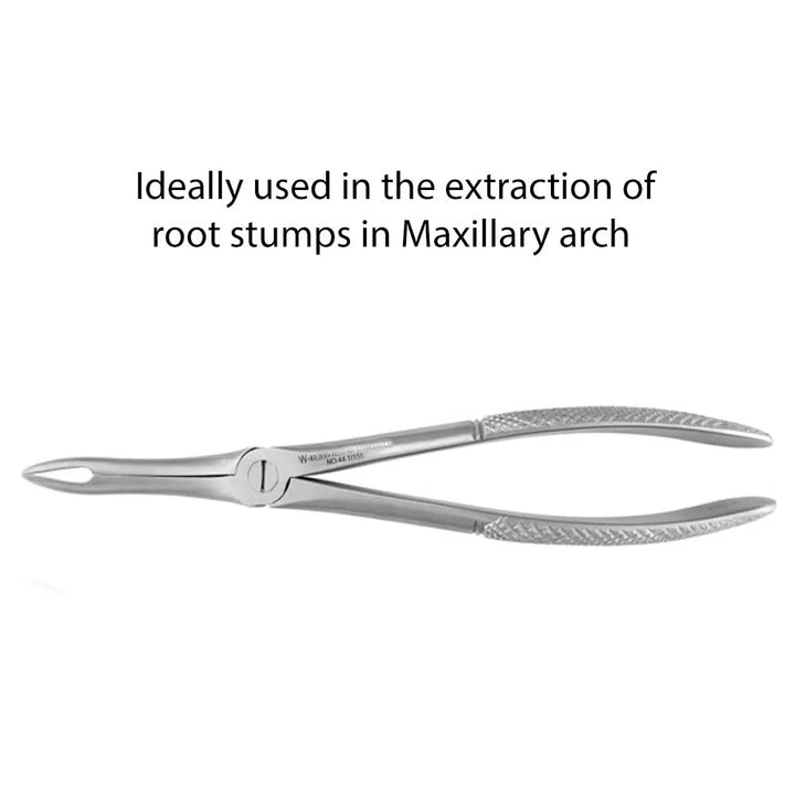 Waldent Tooth Extraction Forceps Upper Roots No.44 (1/158) is an extraction forcep ideally used in the extraction of root stumps in Maxillary arch
